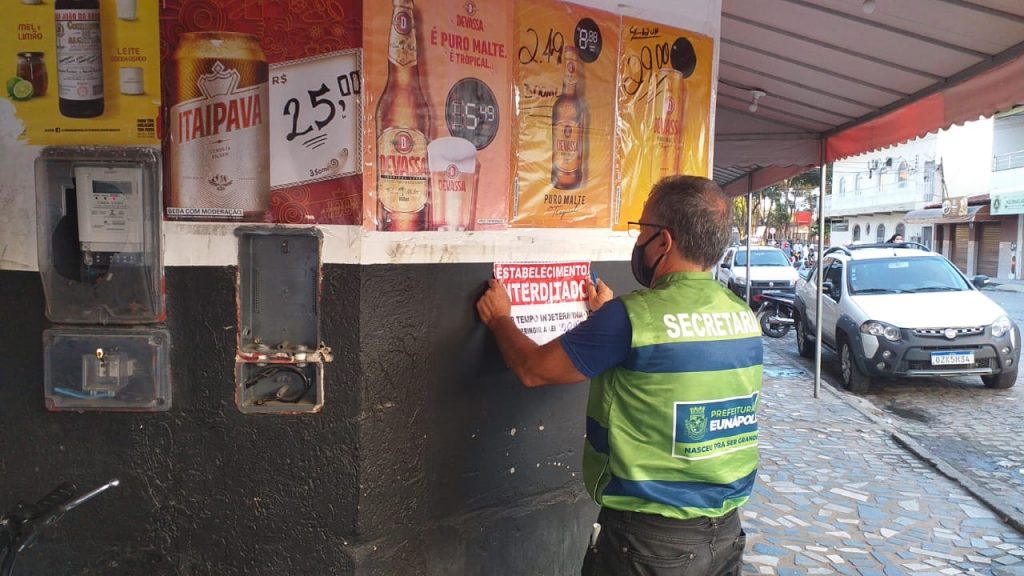 A Vigilância Sanitária de Eunápolis teve um final de semana com muito trabalho. Contando com o apoio da Polícia Militar, a equipe da Vigilância Sanitária fez várias notificações, autuações e conduções para a delegacia. Houve ainda, apreensão de bebidas em festas, sendo constatada a presença de menores e aglomeração.